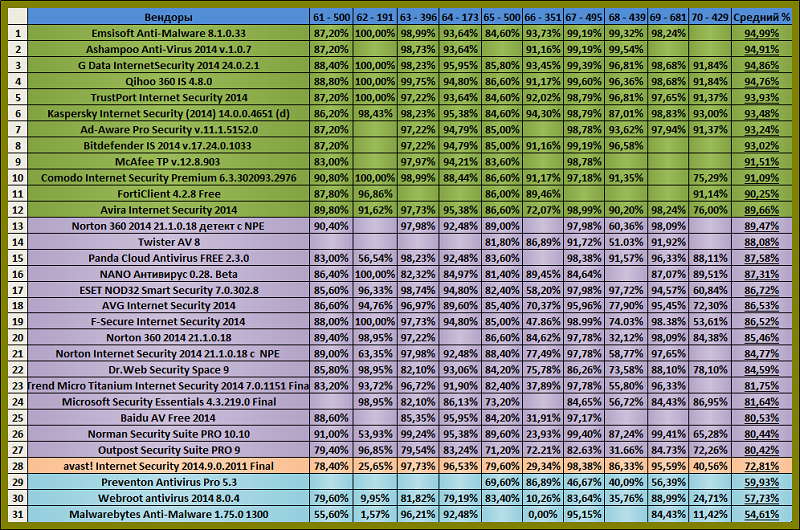 P.S.В этом тесте Nano антивирус показал себя мягко сказано "не очень".Хотя по всем тестам детект у него средний,в отличии от Norton 360,который несмотря на облачные технологии и огромное кол-во пользователей по всему миру,провалил этот тест(даже NPE не сильно помог).Выводы делать вам.Но это всего лишь один из тестов. :)