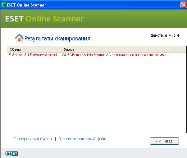 Здравствуйте! Есть файл rserv34ru.msi , который Nano считает инфицированным.