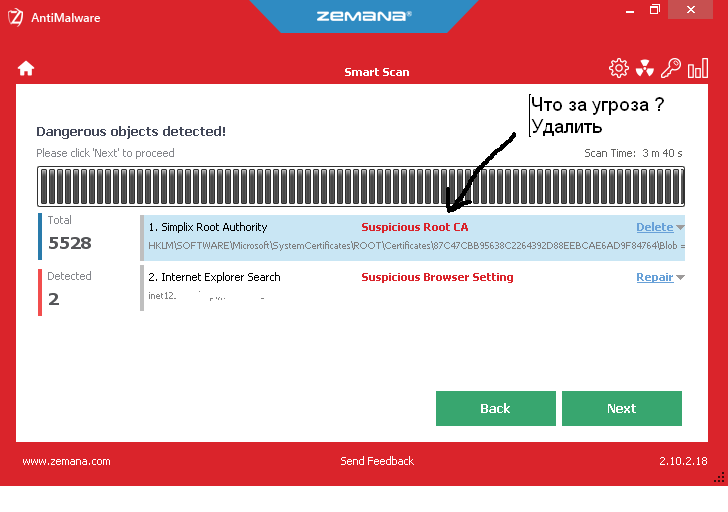 Судя по скриншоту, в системе был обнаружен как раз такой подозрительный корневой сертификат, т.е. сертификат, выпущенный не одним из доверенных удостоверяющих центров.