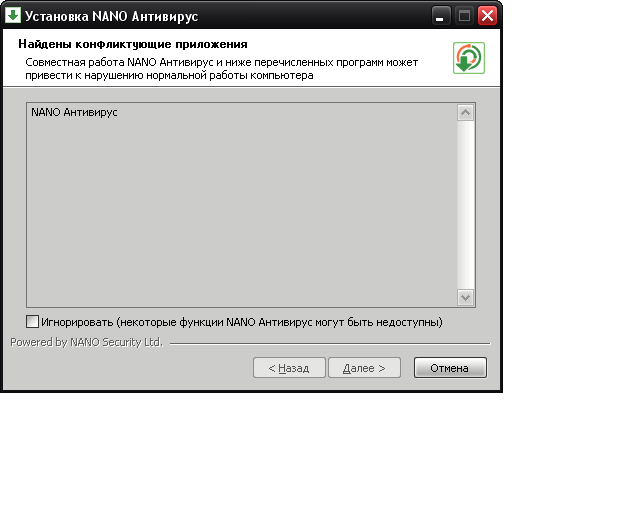 Ранее устанавливал антивирус Nano в последствие пришлось отказаться, моя проблемы была решена , была не в Nano, хотел повторно установить, с удалением старого антивируса и чисткой реестра, выдает такое сообщение, что делать?
