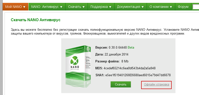 На на страничке "Скачать NANO Антивирус" уже доступен оффлайн-вариант установки: