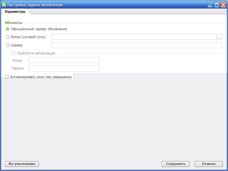 Viha, действительно, кнопка "По умолчанию" присутствует лишь для окна дефолтной настройки и сканирования, и обновления. Для пользовательских задач такую кнопку мы посчитали нецелесообразной. Задача создается уже с дефолтными настройками; в случае, если результат настройки пользовательской задачи окажется неудовлетворительным, проще ее удалить и создать новую. Такова наша позиция, но мы готовы выслушать и другие точки зрения.