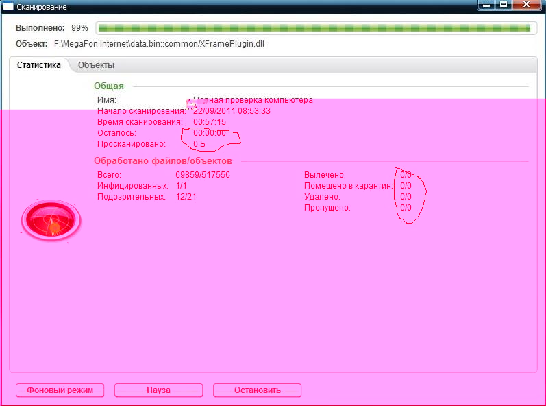 Не отображается объём просканированых данных и кол-во перемещённых файлов в карантин!