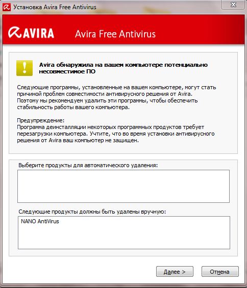 Многие писали, что нано и авира отлично работают вместе, однако сама авира определяет нано как "потенциально несовместимое ПО". И это при том, что я стандартным способом удалил нано антивирус перед установкой авиры. Может существует removal nanoav для полного удаления? Или где находятся "остатки" прежнего ав?
