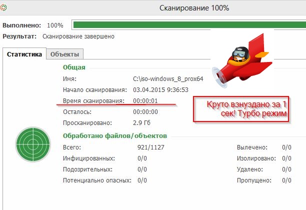 Как выяснилось,истинный отчёт о всех проверенных объектах находится в потаённых глубинах антивирусных недр, и чтобы извлечь его на свет Божий, нужен тайный код в виде некой команды, вот здесь хотелось бы сделать небольшое голосование, а много ли пользователей антивируса знают о таких тонкостях, думаю немного таких найдётся,и и я среди таковых. Друзья,Уважаемые создатели антивируса, нужно делать проще и понятнее, чтобы всё нужное было сразу на видном месте, взять хотя бы вкладку Объекты которая просто пустует, и предназначена как оказалось для чего то иного. Ну а скорость проверки 1127 объектов в одну секунду, это на грани фантастики.
