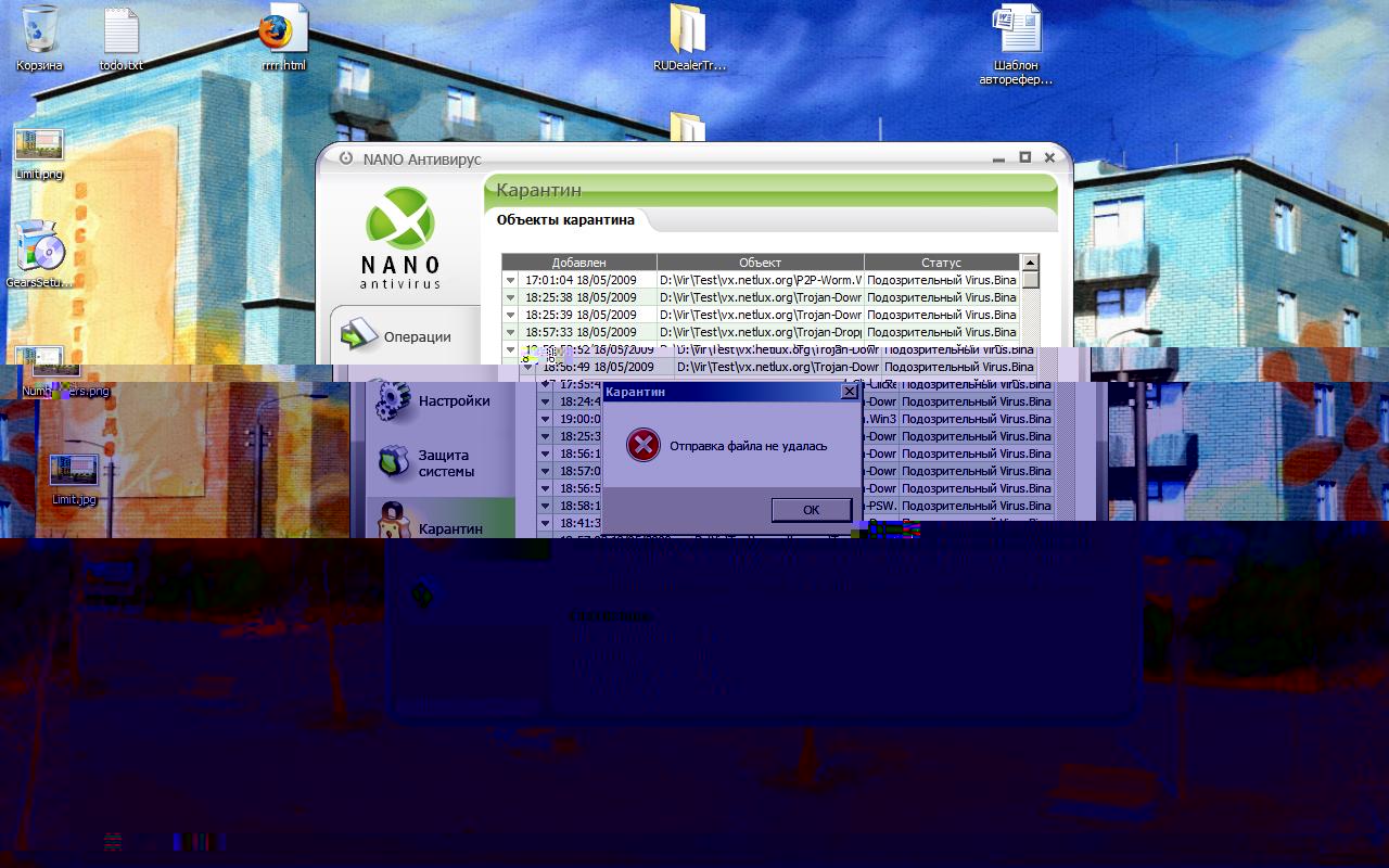 Попробовал отправить объекты из карантина на анализ, но ничего не вышло. См. скриншот.