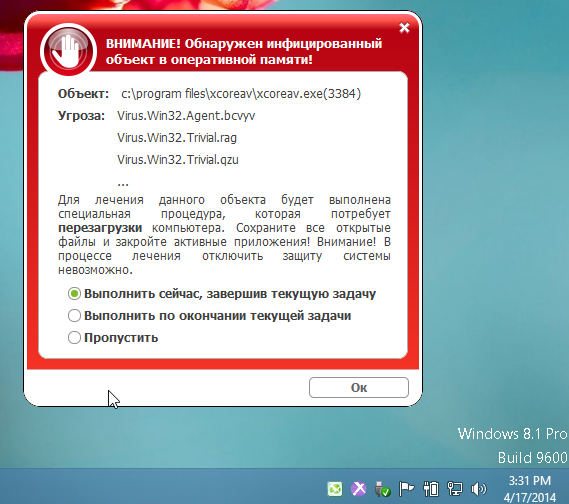 Судя по скриншоту, XMack прав. NANO Антивирус находит вредоносные объекты именно в памяти одного из процессов xCore. Приведу цитату из нашего FAQ: